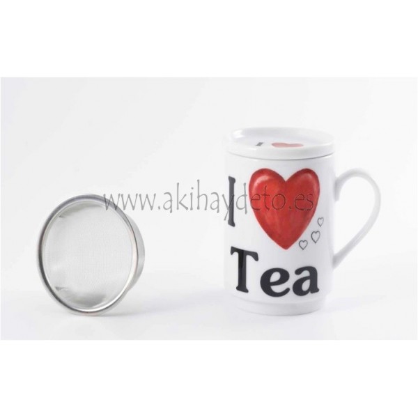 Tisana de porcelana con filtro modelo "I Love Tea", taza para infusiones.