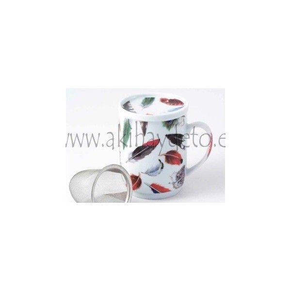 Tisana de porcelana con filtro tapizada modelo Plumas, taza para infusiones.