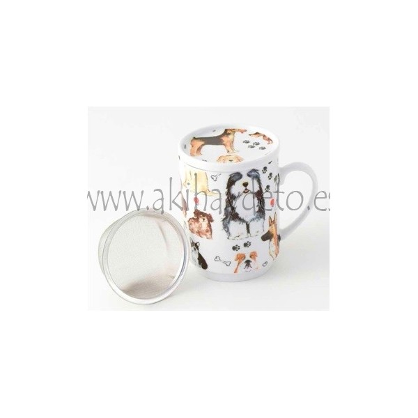 Tisana de porcelana con filtro tapizada modelo Perros, taza para infusiones.
