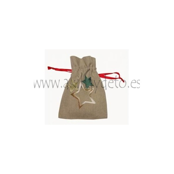 Sacas medidas 12x17 cm color Beige en Polyester, motivo estrella Navidad.
