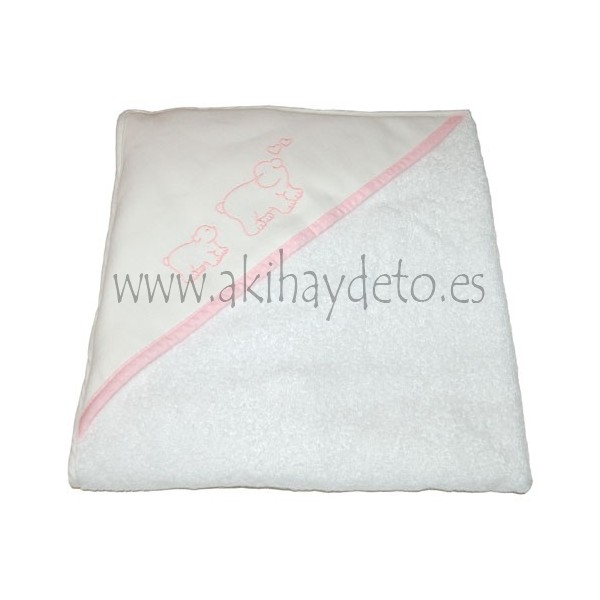 Toalla de baño para Bebé modelo "Osos" color rosa.