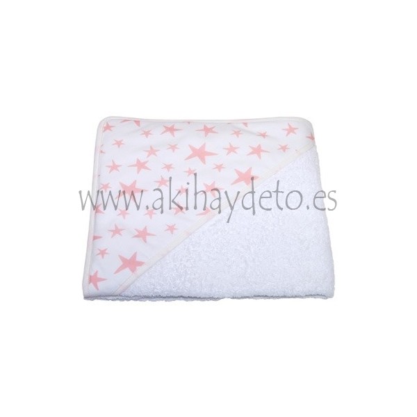 Toalla baño bebe estrellas en color salmon.