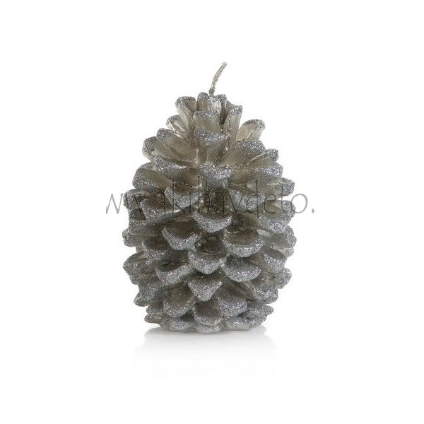 Vela cono c/ glitter cera plateado. Medida 7.5 x 10.5 cm. Minimo 12 unidades (precio por unidad).