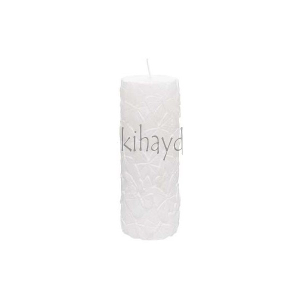 Vela Decoración Cilíndrica, forma Mariposas en color Blanco, medidas 7,3x15 cm. 40 horas de quemado.