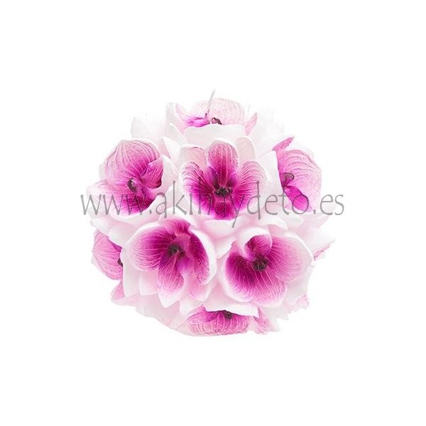 Vela Decoración Circular, forma Orquídea en color Blanco y Morado.